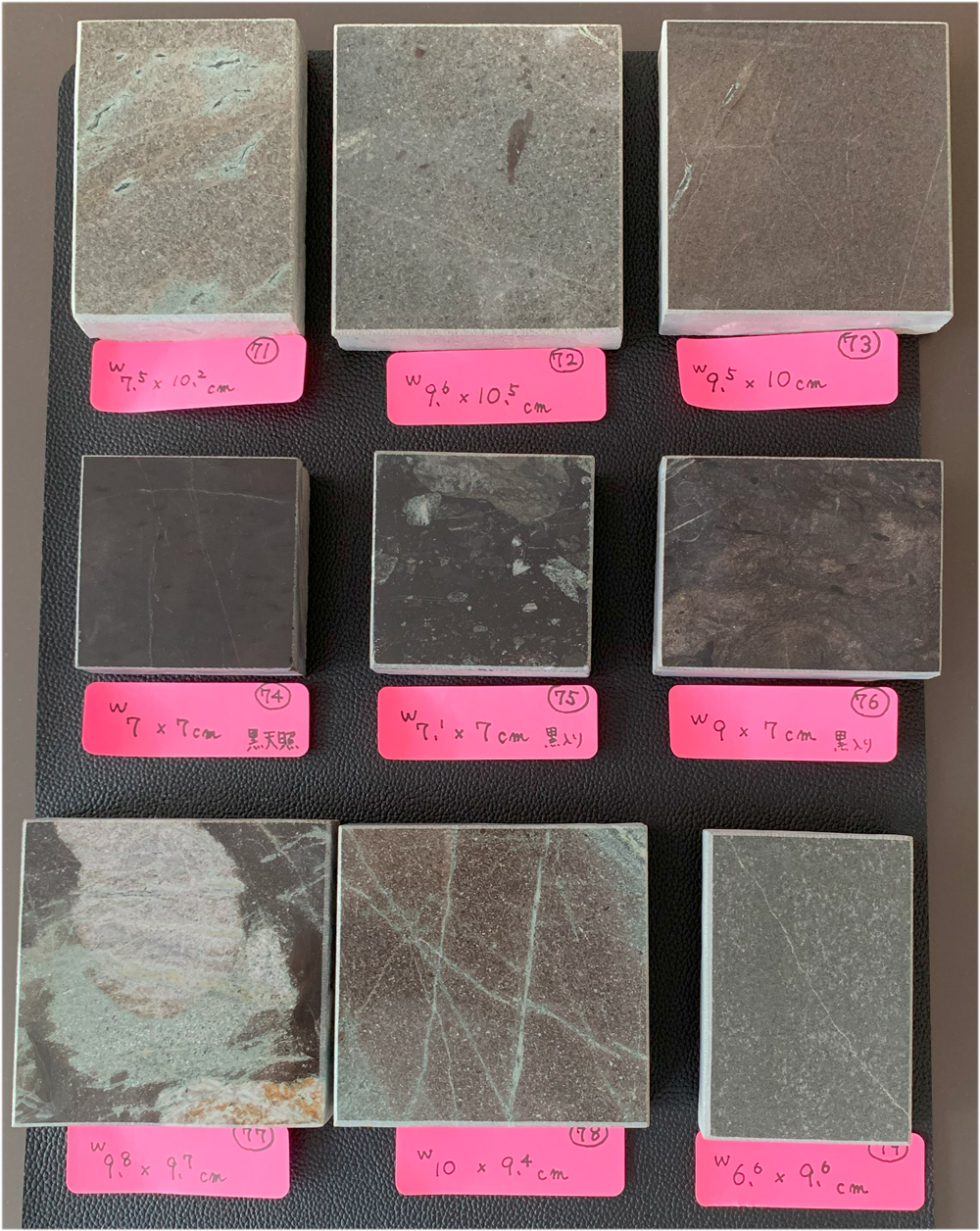 天照石プレート 天面の一面磨きのみ 小口と裏面は加工なしです